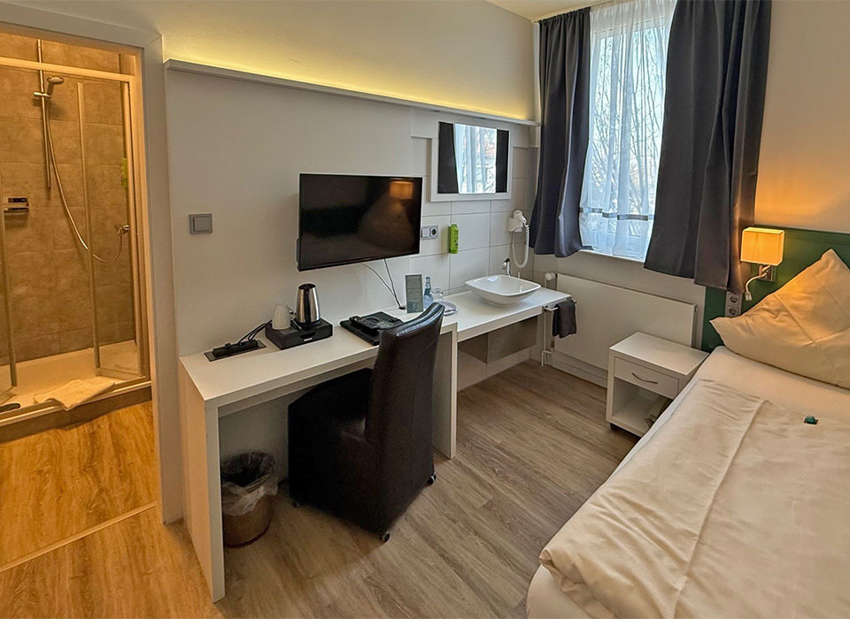 Modern und komfortabel eingerichtet verfügt unser Einzelzimmer Blücher über: